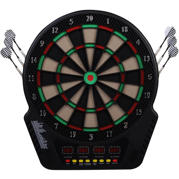 Unser elektronisches Dartboard bietet das perfekte Dartfeeling für zu Hause. Egal ob Jung oder Alt, Anfänger oder Profi. Dieses Gerät ist etwas für jeden Dart-Fan und das ideale Übungsgerät, um mit dem Dartspielen anzufangen. Punktzahlen werden auf den vier LCD Displays angezeigt sodass Sie den Spielstand der vielfältigen Spielvariationen nicht aus den Augen verlieren.Das Board bietet 27 Spiele mit diversen Spielvarianten, darunter auch die beliebtesten Spiele wie Score Cricket, Big Little-Simple, Count up und viele mehr. Ganz gleich, ob Sie allein oder mit bis zu 16 Spielern spielen Spaß ist vorprogrammiert.