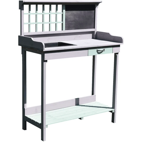 HOMCOM Pflanztisch mit Schublade und Wanne grau, mintgrün