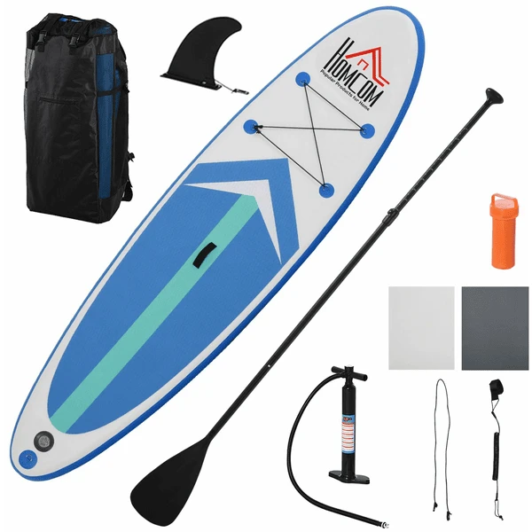 HOMCOM Surfbrett mit Paddel aufblasbar blau, weiß