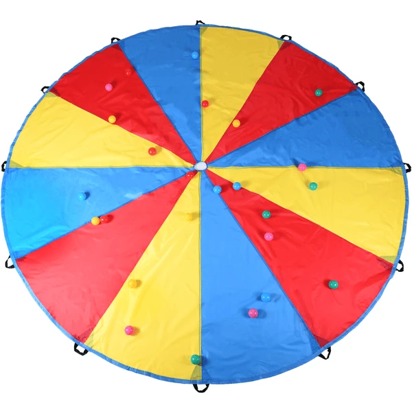Dieses farbenfrohe Regenbogenschwungtuch “Up and Down” von Knorrtoys.com mit 25 Bällen sorgt bei jeder Party für super Stimmung. Bei diesem Spiel ist es wichtig, dass die Kleinen gut mit ihren Freunden zusammenarbeiten. Denn alle Bälle im Schwungtuch zu behalten ist nicht gerade einfach. Das Schwungtuch kann selbstverständlich auch ohne Bälle benutzt werden. Weitere Spielvarianten sind beispielsweise Karussell, Platz tauschen oder Gegenstände erraten. Ein fröhliches, aber lehrsames Spiel mit dem Sie großes Spielvergnügen haben. Mit 12 verstärkten Griffen für noch besseren Halt und mit praktischem Loch in der Mitte für besseren Luftauftrieb. Durchmesser des Schwungtuches: ca. 305 cm. Bälle: Ø 6cm ACHTUNG! Nicht für Kinder unter 3 Jahren geeignet wegen verschluckbarer Kleinteile – Erstickungsgefahr! Benutzung unter unmittelbarer Aufsicht von Erwachsenen.