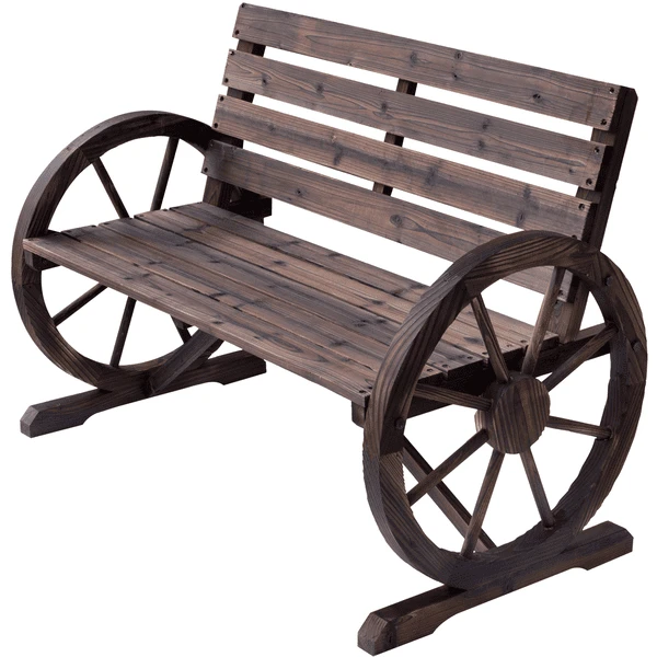 Outsunny Gartenbank im Wagenrad-Design braun