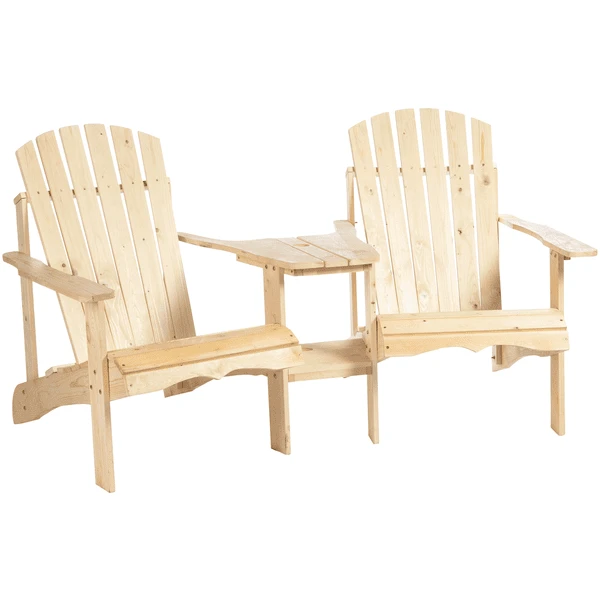Outsunny Gartenbank mit Tisch und Schirmloch naturholz