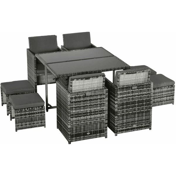 Outsunny Gartenset bestehend aus 9 Teilen und 12 Kissen grau