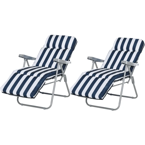 Outsunny Gartenstühle mit verstellbarer Rückenlehne und Polster blau-weiß