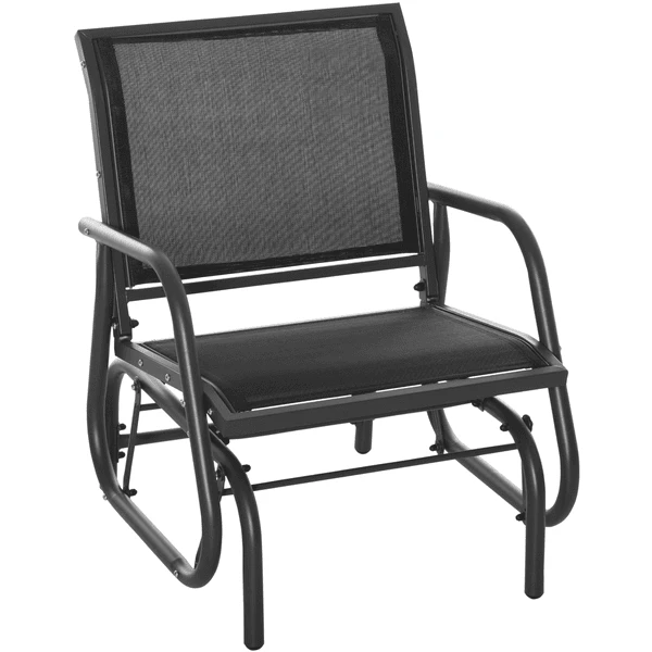 Gleiten Sie mit diesem Außenstuhl sanft in den Tag hinein. Die Struktur aus Stahl ist langlebig und hält bis zu 120 kg aus. Der Stuhl ist in einem einzigartigen schwingenden Design gefertigt, das sich sanft hin und her bewegt – perfekt für entspannende Nachmittagsschläfchen. Die gebogene Rückenlehne, die halbhohen Armlehnen und der atmungsaktive Mesh-Stoff auf dem Sitz und der Rückenlehne lassen Ihre Haut atmen. Mit rutschfesten Füßen ausgestattet.