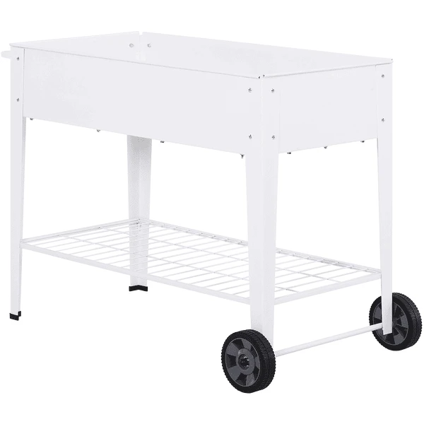 Outsunny Mobiler Pflanzenwagen mit Stauraum weiß