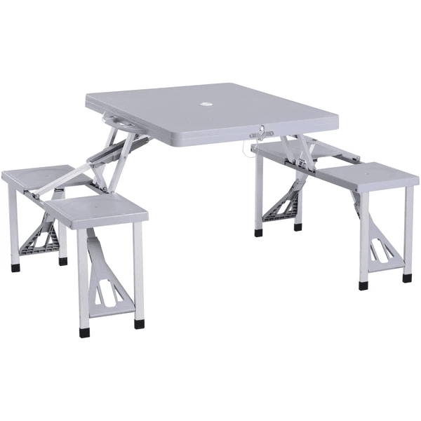 Wenn Sie Stunden in der Sonne verbringen möchten, stellen Sie sicher, dass Sie einen Platz zum Sitzen haben. Dieser Klapptisch ist ideal für ein Picknick im Freien oder für den Garten und eignet sich immer dann, wenn Sie einen zusätzlichen Tisch und Sitzgelegenheiten benötigen. Dieses Set verfügt über einen kompakten Klapptisch mit Sitzbänken für vier Personen. Zusammengeklappt kann es zu einem leicht zu transportierenden Koffer zusammengeklappt werden, um die Aufbewahrung schnell und einfach zu gestalten. Die kompakte Größe des Speichers und die Möglichkeit, ihn überall aufzustellen, machen diesen Tisch zu einem Muss, um Spaß in der Sonne zu haben.