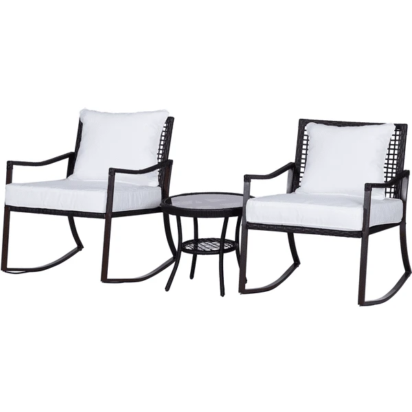 Outsunny Rattan Schaukelstuhl als 7-tlg. Set braun, cremeweiß