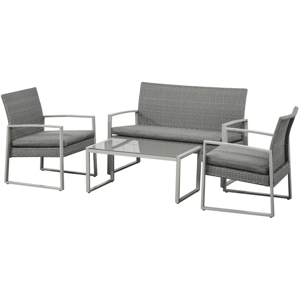 Outsunny Sitzgarnitur 4-teilig aus Polyrattan grau
