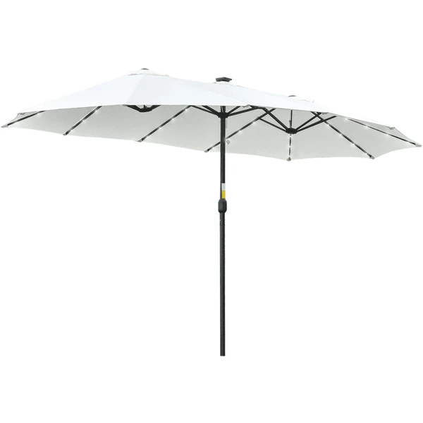 Es ist Zeit, dass Ihr Garten mit diesem doppelseitigen Sonnenschirm erstrahlt. Der stilvolle Sonnenschirm ist mit 48 Lichtern an den Schirmrippen ausgestattet, die Ihren Sitzplatz im Freien bei Dunkelheit erhellen. Der doppelseitige Garten-Sonnenschirm spendet viel Schatten und schützt Sie vor direkter Sonneneinstrahlung. Dieser LED-beleuchtete Gartenschirm ist ein idealer Begleiter für Sie und Ihre Familie und Freunde, um sich im Sommer zu entspannen.