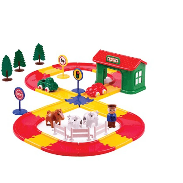 kann Ihr Kind Freundschaft mit den Kühen und dem Pferd schließen - Fahre durch die Stadt mit den weichen und bunten Autos, die perfekt für