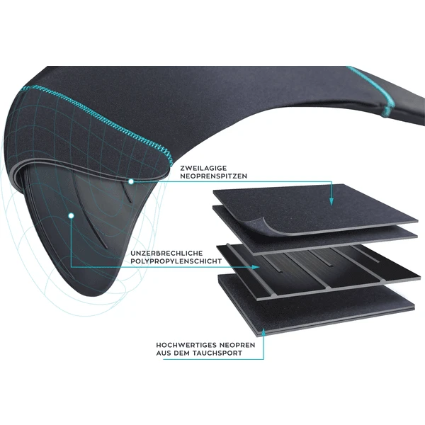 Kombination aus Neoprenüberzug und einer Kunststoffeinlage und ermöglicht ein